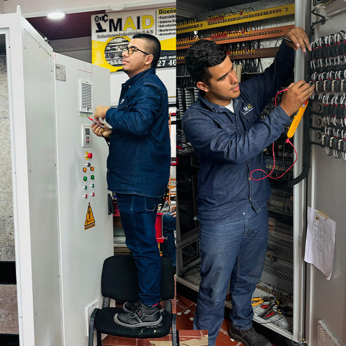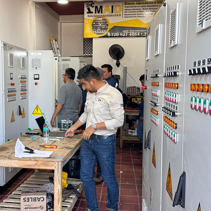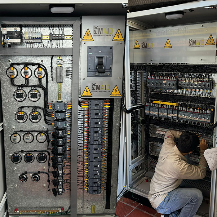 Especialistas en diseño, construcción y ensamblaje de tableros eléctricos de media, baja tensión, control y automatización. Este proceso incluye: Elaborar diagramas y planos eléctricos, Diseñar y construir tableros de control y potencia, Poner en marcha los equipos, su fabricación o ensamblaje debe cumplir criterios de diseño y normas, garantizando la seguridad de los operarios y de las instalaciones donde se encuentran.